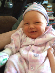 So far she is very peaceful and quiet. She is already sleeping through the night sometimes. So after six kids(and no more. The factory has been decomissioned), we have a great little girl who is already an important part of our great family!